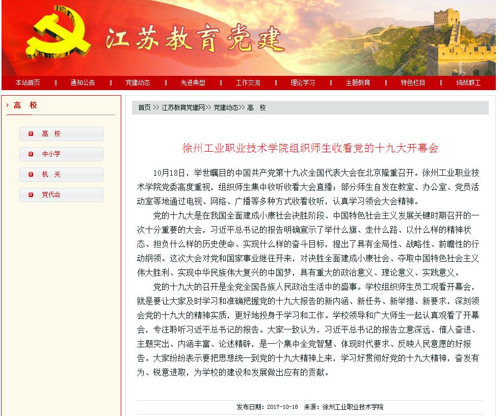 【江苏教育党建】徐州工业捕鱼达人破解版 组织师生收看党的十九大开幕会