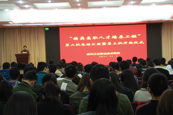 11月1日下午,捕鱼达人破解版 在图书馆报告厅举行“精英高职人才培养工程” 第二批总结汇报暨第三批开班仪式,副院长张芳儒,各二级学院院长、教学副院长、精英班指导教师、第三批精英班全体学生及第二批精英班学生代表参加了会议,会议由教务处处长李荣兵主持。