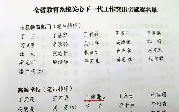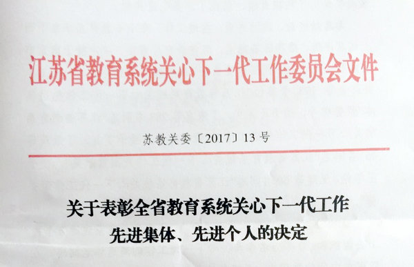 近日,江苏省教育系统关心下一代工作委员会发布《关于表彰全省教育系统关心下一代工作先进集体、先进个人的决定》(苏教关委【2017】13号),捕鱼达人破解版 关工委荣获先进集体,现任常务副主任王健强荣获“突出贡献奖”。这是捕鱼达人破解版 关工委自成立以来第二次获此殊荣,标志着捕鱼达人破解版 关工委各项工作已经进入全省教育系统,特别是高校关工委工作的先进行列。