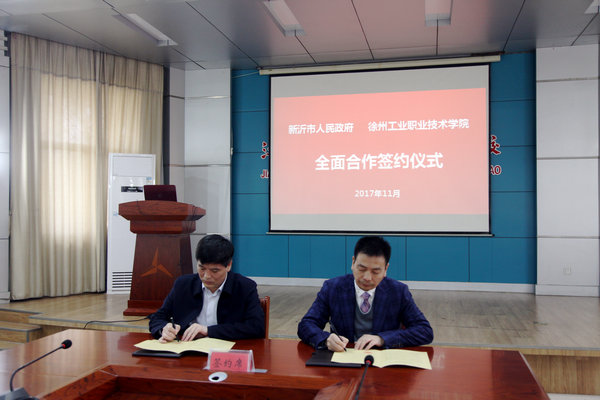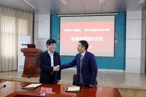 鲍桂楠副院长、周树兵副市长代表政校双方签订了合作协议。根据协议,政校双方将在经济、科技、教育和人才等领域开展全面合作,包括共建新沂学院、共建协同创新平台、共建招生实习就业服务体系等。