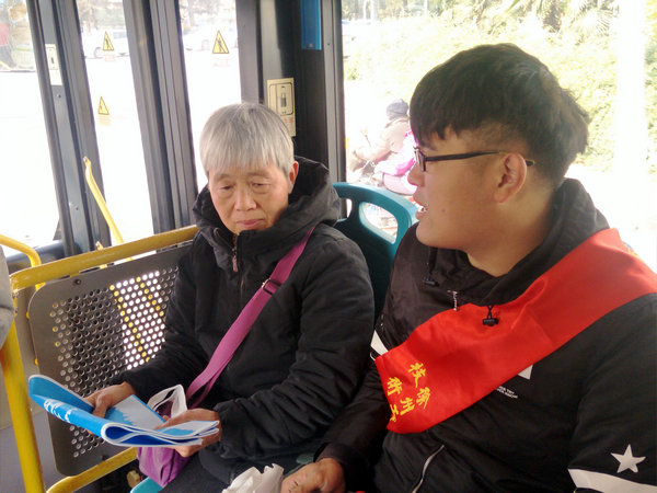 在短短一周内,他们扎实的走过徐州的重要公交干线,不仅如此,他们还用等车时间向候车群众进行党的十九大的内容宣传,传递正能量。