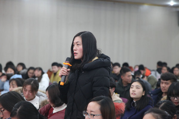 宣讲结束后,张院长用简洁凝练的语言回答了教师和学生提出的“中国特色社会主义进入新时代的起点是什么?”“习近平新时代中国特色社会主义思想对当代大学生有什么要求?”等等问题,加深了师生对十九大精神的理解。