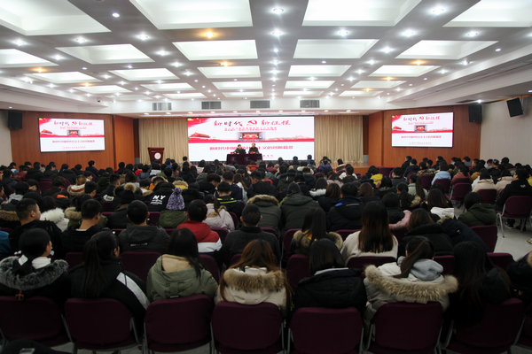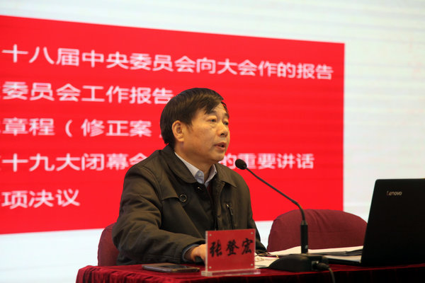为深入学习宣传党的十九大精神,推进国内一流、海内外有影响的高职院校建设,12月14日下午,化学工程学院党总支在图书馆多功能厅举行十九大精神宣讲会,宣讲会由校宣讲团成员——院长张登宏同志主讲。化学工程学院全体教师和17级全体学生参加了此次宣讲会。