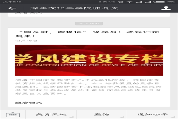 活动开展过程中,化学工程学院结合“四反对、四提倡”的主题,先后组织了8名奖学金获得者,3名学业生涯规划获奖学生面向全体2017级同学开展了先进学习经验宣讲会;团总支微信平台进行了先进学生的先进事迹推送;新生优秀学习体会评选;反对不良学习作风的倡议号召签名等活动。学风教育形式多样,覆盖线上线下,在全院范围内掀起了一股反对不良习惯、学习先进榜样的热潮。