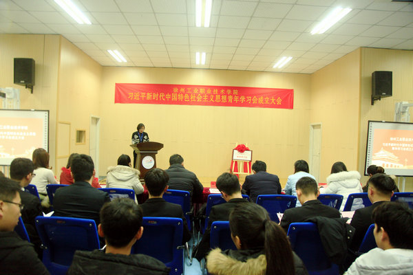 成立大会上,李红副书记对青年学习会的成立表示了祝贺并讲话。李书记在讲话中指出,广大青年学子有责任、有义务推动习近平新时代中国特色社会主义思想的学习与实践,引领时代潮流,做新时代中国马克思主义的宣传队和播种机,做中国特色社会主义伟大事业的忠诚捍卫者和积极推动者,将习近平新时代中国特色社会主义思想内化为前进和奋斗的动力,在实践中磨练意志,锤炼品格。另外,李书记还对青年学习会的同学们提出了三点希望:一是要提高思想认识,充分认识成立学习会的重大意义,青年学生是党的后备军,在新时代下,青年学生要用“习近平新时代中国特色社会主义思想”武装头脑、指导一切行动;二是要勤于学习、善于宣传和践行。青年学生要把“习近平新时代中国特色社会主义思想”学习好、宣传好、践行好,利用课余时间开展理论学习、典型示范、志愿宣讲、直观体验和思想汇报等形式多样的学习交流活动。三要发挥示范引领作用,广泛带动青年学生参与学习和践行,自觉做习近平新时代中国特色社会主义思想的宣传者、践行者,进一步满足青年学生对马克思主义中国化最新成果的理论渴求,真正使这一当代中国最鲜活的马克思主义思想在青年学子中深深扎根。