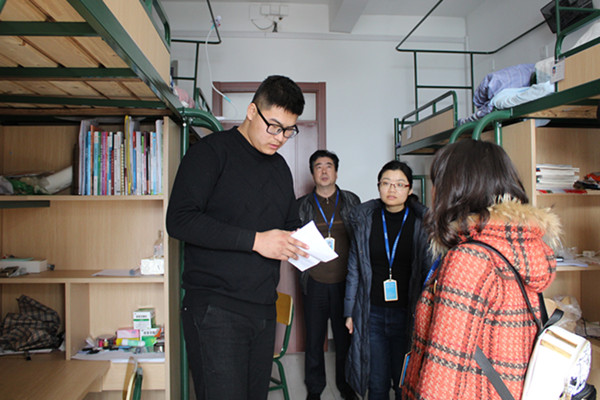 25日下午,工商管理学院罗军书记、各年级辅导员、班主任来到学生宿舍,欢迎同学们返校、与同学畅谈假期生活、指导学生整理宿舍、提醒学生注意保管财物、给父母家人报平安。希望同学们以最饱满的精神状态投入到新学期的学习中。