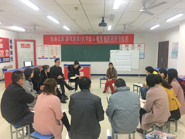 为了进一步提升辅导员、班主任对大学生心理健康的重视和心理危机干预工作的业务水平及应对能力,引导学生珍爱生命,努力创建和谐校园,3月23日下午,建筑工程学院邀请校心理健康教育与咨询中心主任、国家二级心理咨询师马千珉副教授来学院做讲座。讲座在B18-705举行,以“生命之美•你我共绘——大学生心理危机的识别与干预”为主题,学院党总支副书记、专兼职辅导员及全体班主任一起参加了培训。