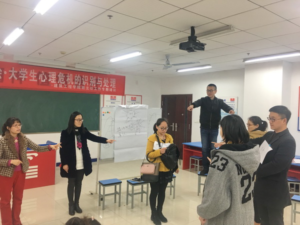 马老师结合自身从事高校心理健康教育与心理咨询的丰富经验,理论联系实际,以生动活泼的形式,从大学生心理危机的种类及识别、班主任如何开展大学生心理危机预防与干预、心理危机干预中的注意事项等几个方面做了讲述和互动。培训中,老师们通过情感连结、情景互动、角色扮演等环节一起亲身体验了处于心理危机中的学生所承受的心理压力,开始学着以“人对人”的角度来面对和接纳处于危机中的学生,而不是以一种惧怕的心态和教育者的姿态来处理问题。