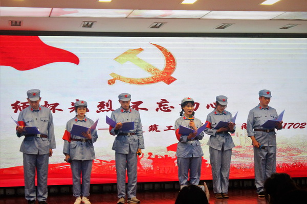 工程造价171班同学们的现代散文《我们的清明》更是激发了全体学生爱党爱国的热情,抒发了对党和祖国的无限热爱。最后,数字媒体的171班的“女子们”为我们带来的是朱相远先生1999年题写的《中华世纪坛序》,它代表了我们不屈不挠的精神和华夏数千年的文明,同时也编织出学生们心中的对祖国崇敬缅怀之情,表达了她们勇于挑起历史重任的决心。