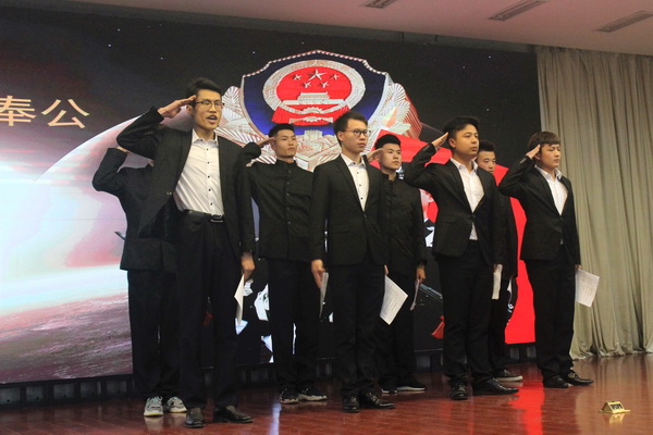 “我想做一名警察”是很多男同学们小时候的梦想,警察是和平年代最危险的职业,他们是何等的无私奉献,面对灾难义无反顾,为了百姓的生命安全逆风前行,用自己身躯抵挡住罪恶的刀锋。建工172班为大家播放了一则3分钟记录短片后,为我们倾情朗诵了热血沸腾的《人民公安烈士诗词》:“从黄岛油库的英雄群体,到泰山脚下的喋血勇士;从江北水城的无畏青春,到齐国故都的血染长路。”震撼人心的声音回荡在现场!