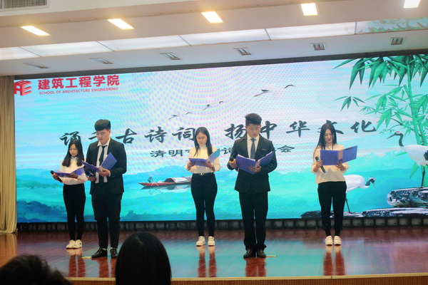 为了践行社会主义核心价值观,弘扬优秀传统文化与爱国精神,在清明这个传统节日到来之际,建筑工程学院团总举办了“诵千古诗词,扬中华文化”清明节诗词诵读会,得到广大青年学生的一致点赞。