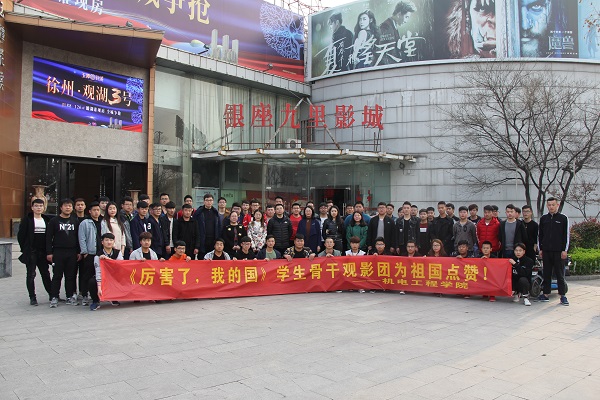 3月23日下午,学院团总支组织学生骨干集体观看影片《厉害了,我的国》。短短90分钟的纪录片,全方位地展示了五年来的“大国风采”,充分彰显了国家实力。同学们都深深沉浸在难以克制的震撼、骄傲和自豪的情绪中。中国天眼、中国高铁……这些超级工程里也饱含了我们机电人的一份汗水,作为未来的大国工匠,大家感到自豪骄傲。从电影院里走出来后,同学们依然沉浸在影片中大气磅礴的画面中,纷纷在影院门口合影留念,表达“我是中国人,我爱我的祖国”的深情。