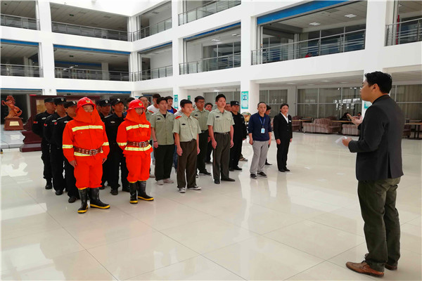 活动前,保卫处与消防维保单位共同制定了周密的活动方案,并提前发布演练通知,做好人员、水电、消防器材等各项应急准备。5月12日上午8:30演练活动在图书馆正式开始,首先消防维保公司负责人对演练过程及注意事项进行了详细说明,接着保卫处副处长刘海涛对活动目的作进一步说明,对参加演练活动的人员提出了针对性的要求,以确保活动取得实效。人员各就各位后,随着感烟器在烟感附近放烟,触发消防警报,图书馆工作人员随即拨打校园“110”报警电话,并摁下手报按钮,在组织自救的同时及时组织现场学生疏散。接警后的保卫值班人员组织保安及时赶往现场协助处理,并电话汇报突发情况。消控室的值班人员根据警报提示也迅速穿上战斗服快速赶往现场,参与初期“火情”扑救。消防联动系统正常运转,警报器、应急灯、卷帘门、应急广播、排烟系统等同时正常启动。在各方努力下,人员迅速疏散,“火情”被控制,实现了人员快速响应到位、应急扑救到位、系统保障到位。图书馆演练后,全体人员又前往B07化工楼进行再一次的演练,提升响应能力,缩短“救援”时间,强化演练效果。