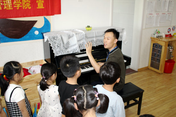 为了响应习近平总书记“五四”寄语,发挥青年学生深入实践,青春奉献的精神,5月31日下午工商管理学院青年学生社会实践团在万科城社区幼儿园开展“关注留守儿童文化艺术送欢乐”的帮扶活动。