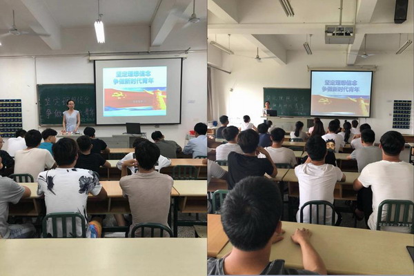 活动通知下发后,各二级学院紧密结合本学院专业特点和学生实际,精心设计活动方案,认真组织各班班主任学习文件,明确了主题班会课的各项要求。第17周、18周,在各二级学院的有力组织下,全校所有2016、2017级班级相继召开了主题班会。各班级围绕党的历史、党的成就、党的理论、党的路线方针政策以及十九大精神等内容组织学生进行了学习,并注重调动学生的能动性与参与性,通过观看纪录片、组织讨论、共唱革命歌曲等形式,激发和抒发他们爱党、热爱祖国、热爱社会主义的情感,坚定投身新时代中国特色社会主义现代化建设的远大志向与使命担当。