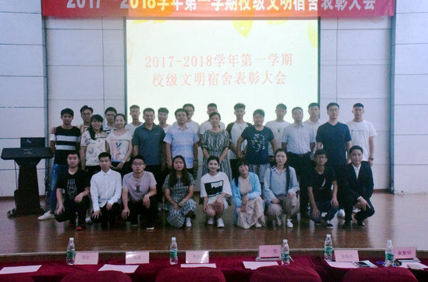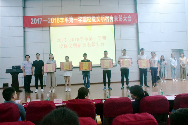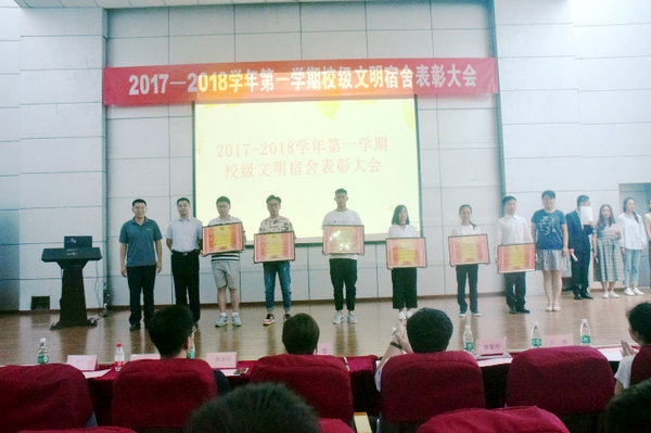 为激励先进,树立典型,表彰在校学风建设工程-宿舍文明建设活动中表现优异的宿舍,7月2日下午,由学生工作处主办、大学生自我管理委员会承办的2017-2018学年第一学期校级文明宿舍表彰大会在西门报告厅举行。学工处安莹副处长、各二级学院学管副院长及大学生自我管理委员会指导老师出席了会议,获奖宿舍学生代表和各公寓宿舍代表共计200多人参加了表彰大会。