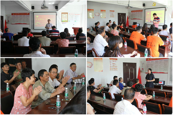 7月16日上午,在徐州市九里街道徐矿城社区的会议室里,40余名社区工作人员、党员代表、居民一起聆听了机电工程学院党总支副书记陈竹、学生党支部书记李德亮和团总支书记黄媛媛带来的十九大精神和习近平新时代中国特色社会主义思想宣讲。宣讲会上,三位老师分别从从主题、核心、新时代、新思想等九个关键词阐述了习近平总书记报告的内容,并且结合徐州市的实际情况,对十九大报告内容进行了全面深刻的解读,通过互动式、有特色、接地气的面对面宣讲交流,深入浅出地解读了“习近平新时代中国特色社会主义思想”的丰富内涵和精髓要义,使社区干部群众对祖国的发展充满信心,每个人的脸上都洋溢着幸福的笑容。徐矿城社区居民王洪伟表示:今天听了老师们的的宣传讲解,我感到我们的祖国现在越来越强大,我相信在习近平总书记新一代党中央的领导下,社会越来越好,越来越发展,人们生活越来越幸福。实践团还为前来参会的老党员同志发放慰问品,表达对他们的敬意。