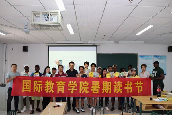 炎炎夏日,朗朗书声,在各种零食、糕点、水果、饮料的簇拥下,国际学生暑期读书节活动于8月20日拉开了帷幕。鼓楼区出入境大队肖队长、杨警官出席此项活动。该项活动由“汉字书写”、“组词造句”、“读书故事”三个部分组成。学生们用自己汉语知识,根据给定的图片,组词造句并获得相应的奖品;在读书讲故事环节,国际学生在教师的指导下阅读带有拼音和图片的中国古代经典文化故事,并尝试用汉语复述故事的内容并讲解之中的道理,他们独特的跨文化解读与理解,给中国经典文本赋予了文化的新意,在提升汉语水平和能力的同时,也对中国传统文化有了更加深刻的理解和感知。