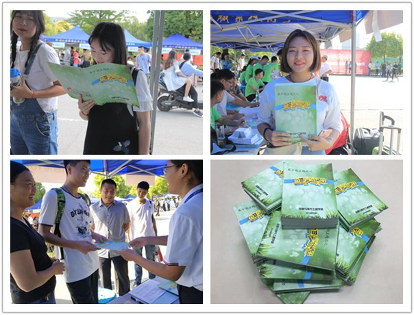 信电学院微信公众号陆续推出辅导员孟丽萍老师写给新生的第一封信——“愿你不负韶华,逐梦工院,致2018届萌新们”,2018级全体班主任老师对新生的殷切寄语——“2018级班主任告白新生”,备受新生的热捧。学院第十期主题周记《奋斗的青春最美丽》编印成册,在迎新现场由班主任向新生发放。本期周记由“书记寄语——2018年在五四表彰大会上的讲话”、“周记心语——辅导员周记汇编”、“心润书香读书会——诗词荐读”、“真谛空间·辅导员下午茶——奋斗的青春最美丽”、“我的青春故事分享汇”等五个部分组成,每一篇都是辅导员送给新生的礼物,都是一周的心灵鸡汤,都是老师与学生沟通的桥梁。通过富含哲理又引人深思的文章,寄语大学新生放飞青春梦想,扛起使命担当,争做新时代奋斗者,助力新生扣好大学生活的第一颗扣子。从班主任手中接过“新书”,新生们怀抱“新书”爱不释手,如获至宝,迫不及待地翻启。家长对主题周记也是赞不绝口,有的还津津有味地阅读起来。