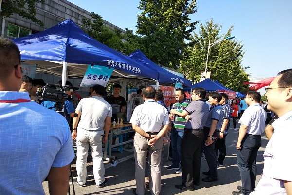 模具协会、机器人协会、机械创新协会和汽车协会助力迎新现场,转盘式自行车停车装置、硬币分拣机、共享车位——一种小区用双层停车位等多项在国家和省级比赛获奖的发明制作在现场进行展示,让新生体验到机电学院“高大上” 的科技范儿,不断地有新生驻足观看,好奇的询问学长,期待未来把梦想、畅想付诸实践变为现实,开拓学生创新视野、传播匠人精神。