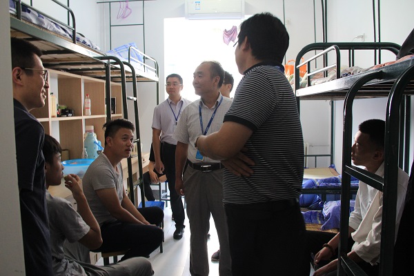 9月8日下午,学院领导走访了新生寝室,耐心的询问新同学对新环境的适应情况,并与家长亲切交谈,询问新生家庭情况,了解新生在生活上的困难和需求,勉励新生入学后好好学习,用优良的成绩回报家长和社会。领导老师的平易近人和殷切话语,让广大新生感受到学院的亲切关怀和重视,使新生们在异地他乡找到家的感觉,让他们对新的学习和生活充满更多的期望和信心。吉智院长、孙金海书记还特别叮咛同学们要注意寝室用电安全、人身和财物安全,营造一个安全整洁的生活环境。