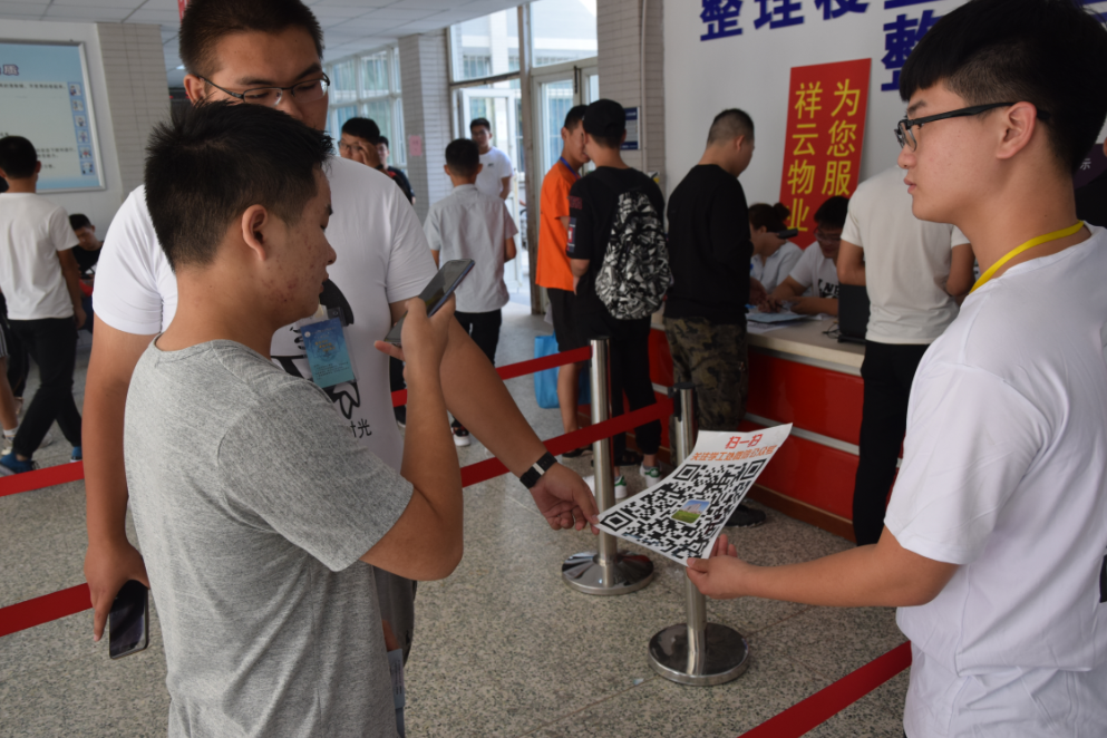 97日上午,迎新工作提前开始,自管会所有志愿者下课后饭也没来得及吃便奔赴自己的工作岗位,身着统一T恤,佩戴会标及工作证,精神抖擞、意气风发。大家有的负责帮助新同学搬运行李,有的负责新生住宿信息录入,有的负责维持宿舍大厅秩序,有的负责各楼层巡查,有的负责问题咨询。每位同学都各司其职,积极主动地迎接每位新生和家长,虽然忙的不亦乐乎却有条不紊、乐在其中,新生公寓的各个区域无不活跃者一个个身着白色表情包T恤的忙碌身影。