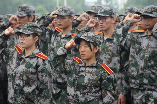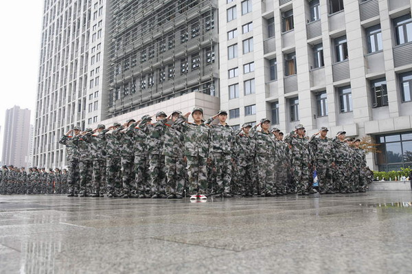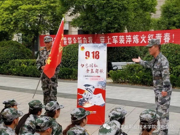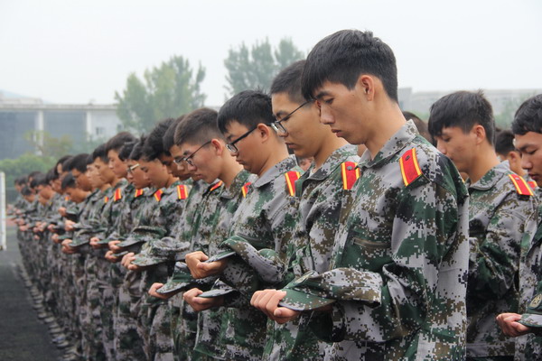 举行集体纪念仪式,强化家国一体价值观念。上午10时整,在防空警报拉向后,全体老师、教官和军训学生在雨中列队整齐、着装严肃,神情肃穆,集体举行向国旗行军礼、为革命先烈默哀等纪念仪式,集体默哀礼毕后,全体师生进行了“牢记历史,勿忘国耻,励志图强,振兴中华”的集体宣誓,并在主题横幅上留下了集体签名。