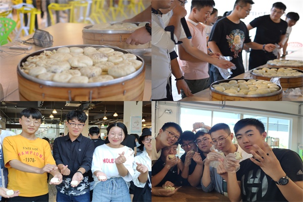 在月饼蒸制过程中,大家围坐在一起尽情联欢,首先是两位教官为同学们带来歌曲“纸短情长”,在悠扬的歌声中大家情不自禁的跟着哼唱了起来。大一新生文晶晶同学的缓歌缦舞,如初生芙蓉萍水而出,尽态极妍。薛冠华同学的萨克斯独奏,细腻委婉,清新悠扬,音色优美。茱莉亚和莉莉两位留学生为同学们带来了歌曲“朋友”,一曲朋友唱出了他们的心声,赢得了同学们的阵阵掌声。