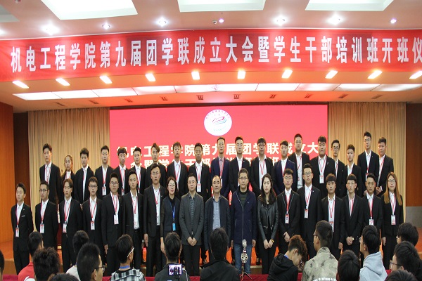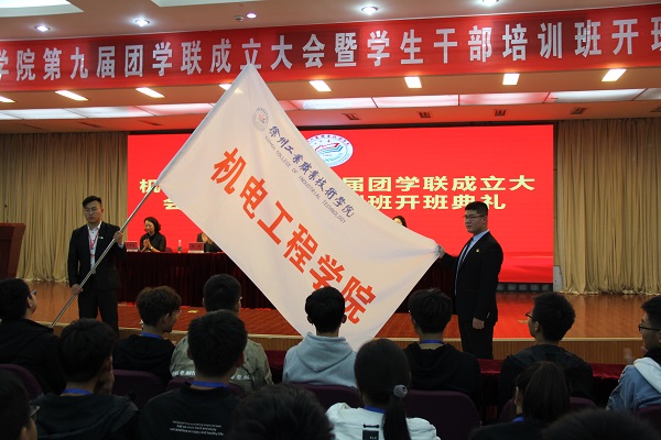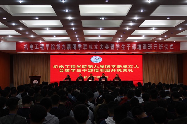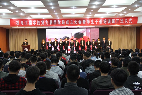 为推动学院团学工作进一步发展,调动广大同学的工作热情,增强学生干部的光荣感、使命感、责任感, 10月24日下午,机电工程学院在图书馆报告厅举行第九届团学联成立大会暨学生干部培训班开班典礼。机电工程学院党总支书记孙金海、学工处处长助理王贵锋、副院长陈竹以及各年级辅导员老师出席会议,各学生组织学生干部、各班学生代表参加了会议。会议由机电工程学院团总支书记黄媛媛主持。