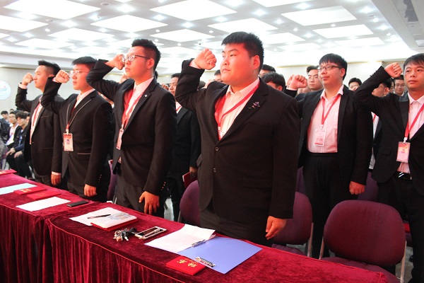 大会第二阶段,第九届团学联的主要学生干部集体亮相,参加就职承诺仪式,学生会各部长依次上台面对所有学生会成员做出庄严承诺,希望在各位学干的共同努力下,把我们学生会建设成一支胸怀理想、心系同学、品学兼优、作风扎实的队伍,共同维护组织形象,更好履行工作职责。
