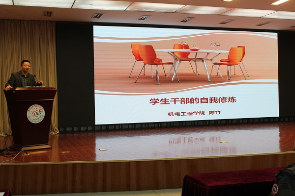大会第三阶段,陈竹副院长作了以“学生干部自我修炼”为主题的学生干部专题培训,陈院长强调学生干部是学生工作的主力军,是教育管理者的得力助手;他从“三种身份、三大责任、五种心态、四项要求”来阐释了学生干部的角色定位和工作要求,希望大家能通过自己的努力,不断提高学生干部的理论素养,研究能力和实践水平,用坚定的步伐和无限的激情走向美好的未来!