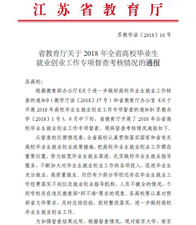 11月12日,江苏省教育厅就2018年全省高校毕业生就业创业工作专项督查考核情况进行了通报,捕鱼达人破解版 以扎实的过程管理、突出的工作实绩从全省本专科高校中脱颖而出,被评为“2018年高校毕业生就业创业工作考核优秀单位”。