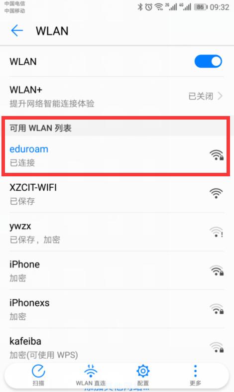 步骤一:搜索无线信号eduroam