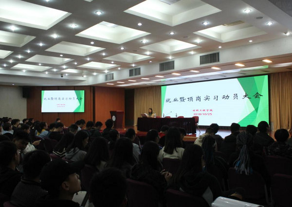 为进一步加强毕业生顶岗实习和就业工作,引导学生做好顶岗实习的各项准备,材料工程学院在图书馆报告厅召开“2019届毕业生实习与就业工作安排暨就业能力培训会”。材料学院党总支书记、院长李素婷,副院长柳峰、赵音,学院辅导员老师、实习指导教师以及2019届全体学生参加大会。