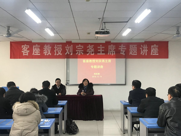 12月12日下午,徐州市社科联主席、捕鱼达人破解版 客座教授刘宗尧作“社科课题申报与研究”专题讲座;党委副书记李红,思政、基础部乔向东部长及全体专兼职教师参加。