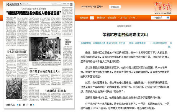 潘朝君到徐州上学后,他希望自己能在这座城市为家乡的蓝莓开拓市场。