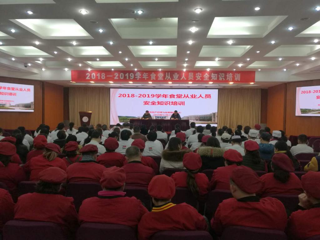 12月25日下午2:00,国有资产管理与后勤服务中心在图书馆多功能厅召开2018-2019学年食堂从业人员安全知识培训会议。中心邀请徐州市鼓楼区食品药品监督管理局王彬科长作食品安全知识培训,膳食管理科及餐饮公司全体工作人员150余人参加了培训会议,会议由膳食管理科科长周强主持。