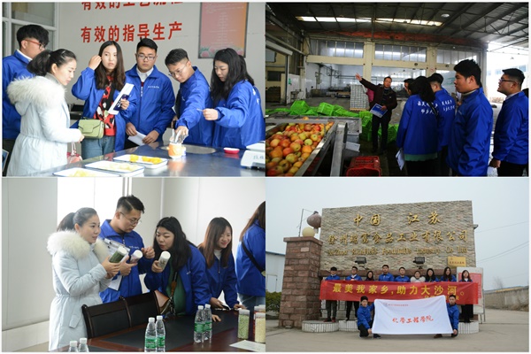为了帮助大沙河贫困果农走出困境,助力精准扶贫,2018年12月19日,化学工程学院“最美我家乡,助力大沙河”大学生创业团队在团总支书记高成老师的带领下前往丰县大沙河镇,实地到大沙河镇人民政府,宁兴、瑞富两家果品生产加工企业以及部分贫困农户家进行走访调研。
