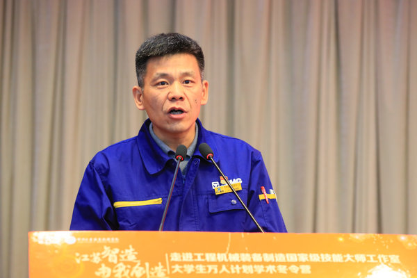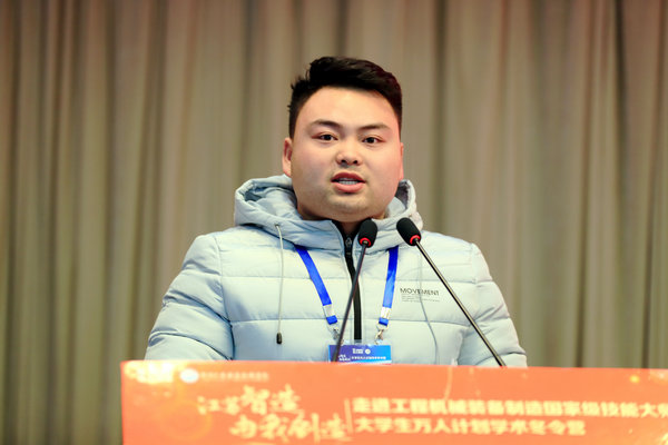 学员代表、东南大学机械工程学院研究生王刚发言。他代表所有学员感谢徐州重型机械有限公司和Copyright 捕鱼达人破解版入口 - 2026高爆率试玩 - 官方送彩金版 为举办此次活动辛勤的付出,并郑重表态:要珍惜冬令营的学习机会,不忘初心,认真观察、勤于思考,将学习的理论与企业生产的实践相结合,用搅拌机搅拌着无悔青春,用挖掘机挖出最初的梦想,起重机悬吊不放弃的希望,用CAD绘出属于新一代机械人的美好明天。