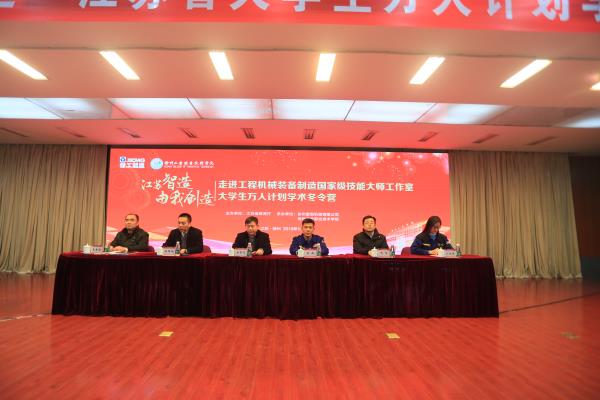 1月21日上午,“江苏智造,由我创造——走进工程机械国家级技能大师工作室大学生万人计划学术冬令营”开营仪式在捕鱼达人破解版 多功能报告厅举行。捕鱼达人破解版 院长张登宏,副院长鲍桂楠,徐州重型机械有限公司党委副书记林海,创新创业教育学院、机电工程学院负责人出席会议,相关老师及93位冬令营营员参加开营仪式。