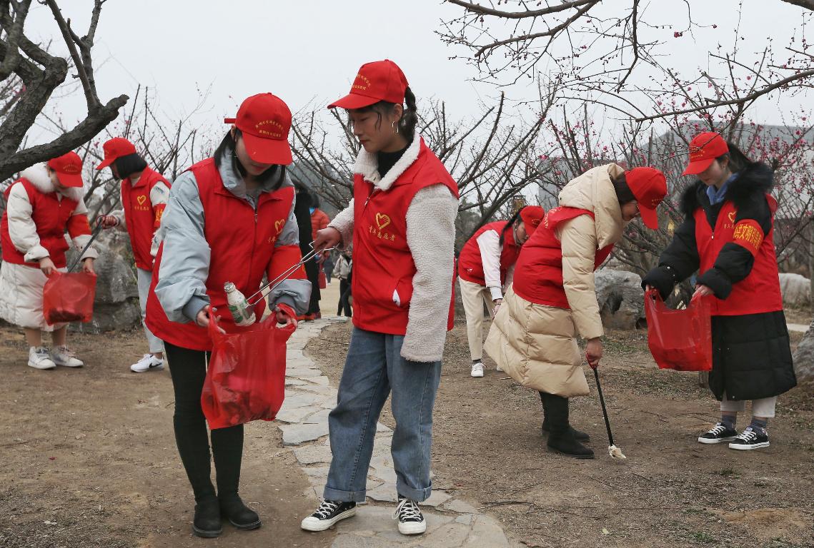 九里街道团工委蓝天志愿服务队携手工商管理学院青春志愿服务队把龟山探梅园的美进行了“升级”,他们钻进每一个草丛、走过每一条小道、下到每一处水岸……捡拾塑料袋、烟头、废弃饮料瓶等垃圾,他们的行为得到了游客们的赞扬,有了他们的最美行动,景区也变得更加美丽!