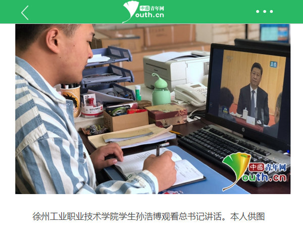 3月5日-3月6日,材料工程学院团总支举办了“聚焦‘两会’看热点,材料青年有话说”为主题的系列活动。“材子材女”们通过报纸、网络、电视、广播、手机客户端等多种形式关注“两会”动态,深入学习全国“两会”精神。高分子182班班长孙浩博,一直关注时政,是《新闻联播》的铁杆粉丝。在“两会”开幕期间,他积极响应材料团总支号召,宣传和观看两会相关报道和视频,书写自身的心得体会。孙浩博说:“作为一个‘00后’工院人,更要秉承‘橡胶精神’和‘品质意识’,将“两会”精神带到以后的学习和工作中,练就过硬本领、锻造真材实料,成为工匠精神的践行者,为国家建设贡献自己的全部力量。”材料工程学院组织的“聚焦‘两会’看热点,材料青年有话说”主题活动,在青年学生中形成良好反响,孙浩博也被中国青年报、中国青年网关注和报道,成我们身边榜样,前行的力量。