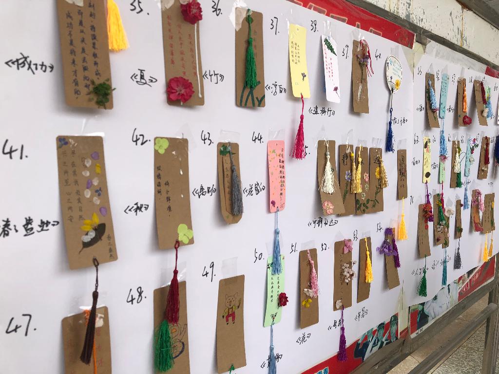 同学们在不同的彩纸上写下励志格言,并配以精致可爱的插图,设计或独特,或新颖,吸引了学生们纷纷驻足观看。在活动中,学生们兴趣浓厚,巧动双手,精心设计,利用花朵、树叶、图案、文字等素材,在小小的纸片上绘制、黏贴设计成各种有趣实用的书签,每幅作品均构思新颖,设计精巧,制作精美,摘抄下体会最深的句子,让书签以种种灵巧的形式展现出来,充分体现了同学们丰富的想象力和创造力。书签形状有长方形、扇形等多种样式,作品名字也是别具匠心,如《伊望星空》、《芳华》、《伊人》、《悦》等,还有系列作品如《宁静致远》等,给小小的一方书签,赋予了新的生命。