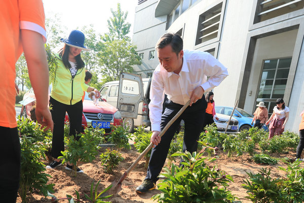 芳菲四月,草木蔓发。为了进一步打造整洁、美丽、绿色的校园环境,切实发挥党员的先锋模范带头作用,培养师生的生态环保意识和爱校意识,近日,机关党总支第一支部、学工支部联合开展了“爱绿护绿 携手共建美丽校园”党员活动日实践活动。党委书记祝木伟以普通党员身份参加本次活动。