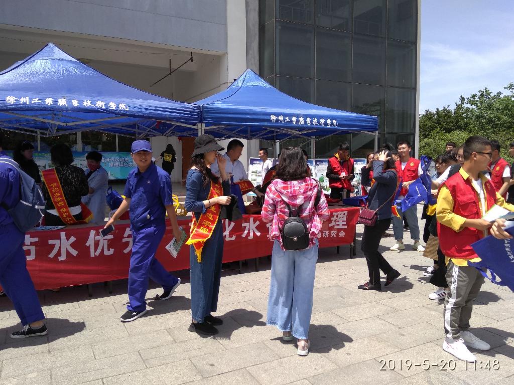 为认真贯彻落实党的十九大关于实施国家节水行动的部署以及省、市有关节水行动,5月20日上午,捕鱼达人破解版 联合徐州市城市节约用水办公室、徐州市水资源研究会会在捕鱼达人破解版 第二食堂东广场联合开展了以“建设节水城市,推进绿色发展”为主题的“2019年全国城市节约用水宣传周”活动,市节水办、市水资源研究会相关领导、国有资产管理与后勤服务中心主任杨宏楼参加了活动。