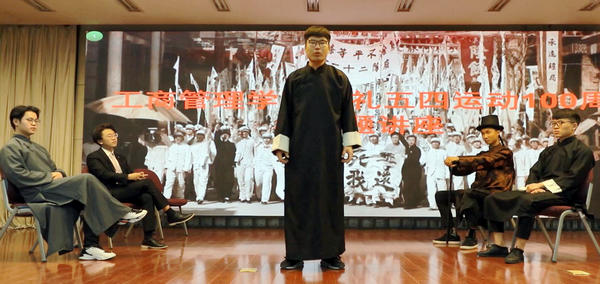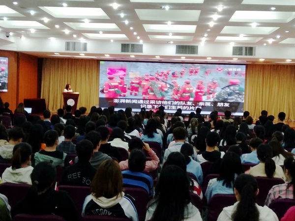 报告会在与同学们的互动中开场,内容主要分为三个部分:一是改变。陈老师在讲述的过程中,插入了由本学院学生表演的小话剧,重现了“20世纪初北京大学聘请学界大咖”和“1919年北京大学学界大咖关于中国走什么样的发展道路激烈辩论”两个场景,让同学们身临其境的感受到1919年这些90后与当时学界大咖们激烈的思想碰撞。二是牺牲。陈老师着重讲述了五四运动时青年们如何奉献和牺牲,并与四川省凉山州森林消防支队西昌大队27名90后的牺牲精神做了类比。在观看青年英雄灭火事迹的视频时,很多同学都留下了感动的泪水。三是奋斗。陈老师着重讲述了五四90后罗家伦、毛泽东等前辈们在新民主主义革命道路上不断奋斗的故事,激励大家坚定理想信念,抒写奋斗青春。