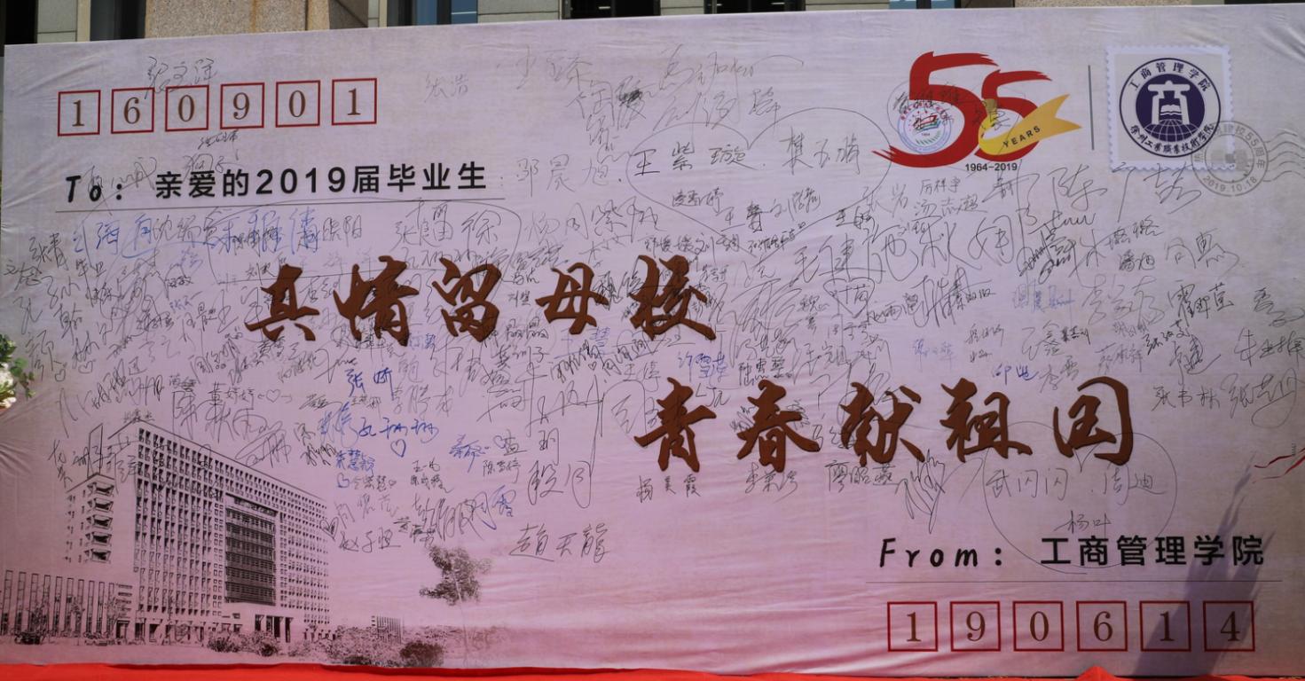 在整个毕业季活动中,有一条线贯穿始终,那就是让工商学院的院标于每一份纪念品、每一个活动现场和每一张青春笑脸上,让大家牢记自己是工商管理学院大家庭中的一员。