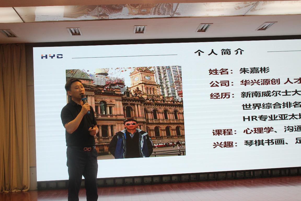 华兴源创科技股份有限公司人力资源总监朱嘉彬作为我院职业规划大赛的校外导师对参赛选手的出色表现给予肯定,同时也针对问题,给出了建议和希望。随后,朱总结合自身多年从事人力资源管理工作的经验做了一场精彩的“大学生职业生涯规划”专题讲座。朱总建议大学生一定要深刻剖析自我、认知社会,对职业生涯规划制定一定要基于自我认知,行业需求,国家需要和社会发展,劝勉大学生一定要戒骄戒躁,切勿好高骛远,要脚踏实地的科学规划自己的职业人生。