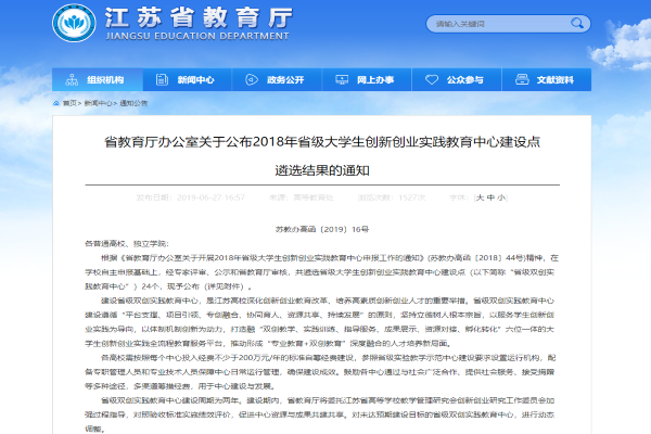 6月21日,江苏省教育厅下发了《省教育厅办公室关于公布2018 年省级大学生创新创业实践教育中心建设点遴选结果的通知》(苏教办高函【2019】16号)。经捕鱼达人破解版 申报、省教育厅审核,捕鱼达人破解版 申报的“智能制造创新创业人才实践教育中心”获批成为省级大学生创新创业实践教育中心,成为首批立项的24所高校之一。