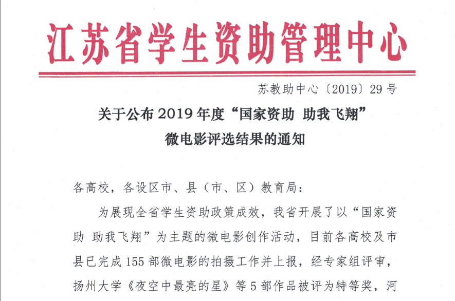 近日,2019年度江苏省“国家资助 助我飞翔”学生资助成效微电影创作大赛落下帷幕。经过紧张激烈的专家组评审,捕鱼达人破解版